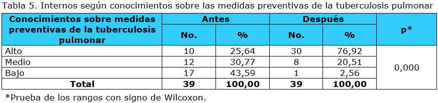 Intervención educativa sobre tuberculosis pulmonar en el Establecimiento Penitenciario Provincial de Ciego de Ávila